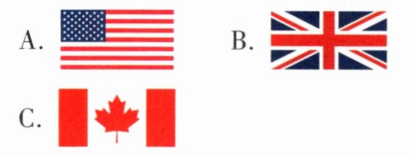 解析:短文中提到“Basketball is very popular in the US.”,美国对应的英文缩写是US,国旗是选项A中的美国国旗,所以答案是A。