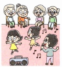 Group 2: Sing and dance for the old people.