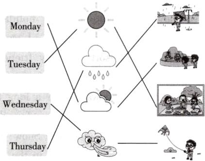 )4. A. It's raining now. B. It was windy.C. It is sunny.