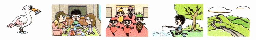 一、听录音,根据所听顺序用1—5给下列图片排序。