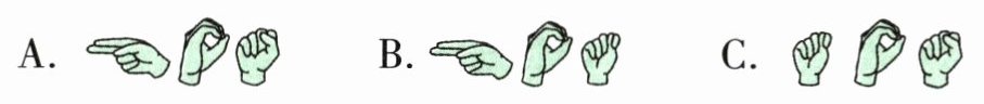 ( )3. Which group of signs shows how to finger-spell the word "hot"?