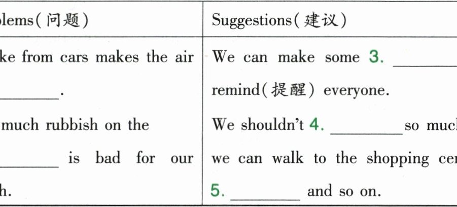 | Smoke from cars makes the air 1. ______ . | We can make some 3. ______ to remind (提醒) everyone. |