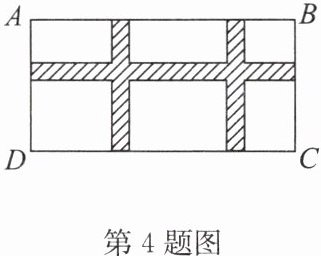 4. 如图,某小区规划在长 20 米、宽 10 米的矩形场地 ABCD 上修建三条同样宽的小路,使其中两条与 AD 平行,一条与 AB 平行,其余部分种草.若草坪的面积为 162 平方米,则小路宽多少米?