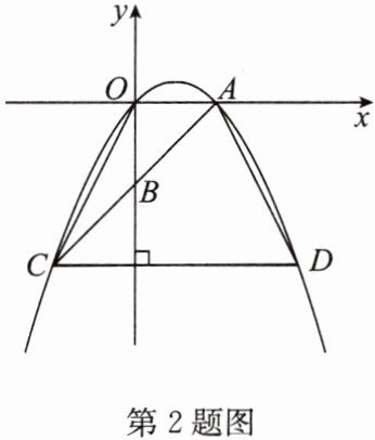 2. 如图,在平面直角坐标系中,$O$为坐标原点,抛物线$y = -\frac{1}{2}x^{2} + bx与x轴正半轴交于点A$,点$B是y$轴负半轴上一点,点$A关于点B的对称点C$在该抛物线上,过点$C作y轴的垂线交抛物线于点D$,连接$OC$,$AD$. 若点$C的横坐标为-2$,求四边形$OCDA$的面积.
