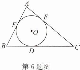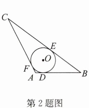 2.(2024·东城区期末)如图,$\odot O是\triangle ABC$的内切圆,与 AB,BC,AC 分别相切于点 D,E,F.若$\odot O$的半径为 2,$AB= 6,AC= 8,BC= 12$,则$\triangle ABC$的面积为(