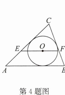 4.(2024·昆山期末)如图,$\triangle ABC$的周长是 18 cm,点 O 是$\triangle ABC$的内心,过点 O 作$EF// AB$,与 AC,BC 分别交于点 E,F.已知$AB= 6cm$,则$\triangle CEF$的周长为