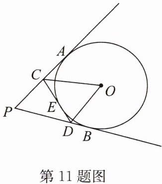 11.如图,PA,PB 是$\odot O$的切线,CD 切$\odot O$于点 E,$\triangle PCD$的周长为 12,$∠APB= 60^{\circ }$.