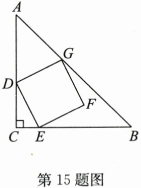15.(2024·南通)如图,在$Rt\triangle ABC$中,$\angle ACB = 90^{\circ}$,$AC = BC = 5$。正方形DEFG的边长为$\sqrt{5}$,它的顶点D,E,G分别在$\triangle ABC$的边上,则BG的长为______