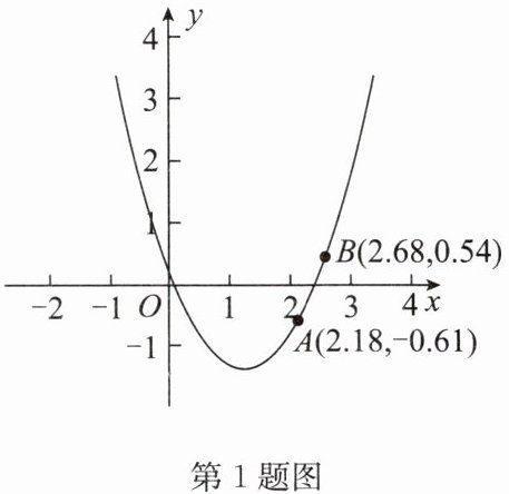 1. 如图,点 $ A(2.18,-0.61),B(2.68,0.54) $ 在二次函数 $ y = ax^{2}+bx + c(a\neq0) $ 的图象上,则关于 x 的方程 $ ax^{2}+bx + c = 0 $ 的一个近似解可能是(