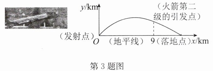 ∴火箭第二级的引发点的坐标为(9,81a + 9)。设火箭落地点与发射点的水平距离为15km,