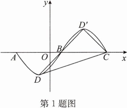 1. 如图,抛物线 $ y = ax^{2}+2ax - 3a(a>0) $ 与 $ x $ 轴交于 $ A,B $ 两点,顶点为 $ D $,把抛物线在 $ x $ 轴下方部分关于点 $ B $ 作中心对称,点 $ D $ 的对应点为 $ D' $,点 $ A $ 的对应点为 $ C $,连接 $ DD',CD',DC $。当 $ \triangle CDD' $ 是直角三角形时,$ a $ 的值为 (