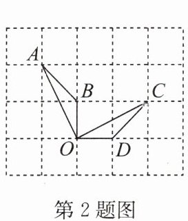2. 如图,点$A,B,C,D,O$都在网格的格点上,若$\triangle COD是由\triangle AOB绕点O$按顺时针方向旋转得到的,则旋转的角度为 (