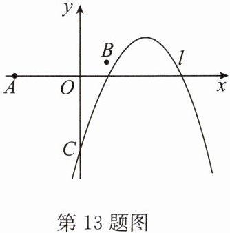 13. 如图,已知点$O(0,0),A(-5,0),B(2,1)$,抛物线$l:y= -(x-h)^{2}+1$(h为常数)与y轴的交点为C.