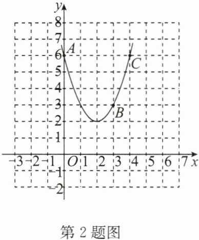 2. (2024·花都区期末)如图,二次函数$y= ax^{2}+bx+c的图象经过点A(0,6)$、$B(3,3)$、$C(4,6)$。