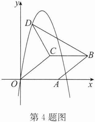 4. 如图,在平面直角坐标系中,菱形$OABC的顶点A在x$轴的正半轴上,顶点$C的坐标为(4,3)$,$D是抛物线y = -x^{2}+6x$上一点,且在$x$轴上方,则$\triangle BCD$面积的最大值为______