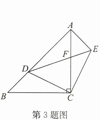 3. 如图,在$Rt\triangle ACB$中,$\angle ACB = 90^{\circ}$,$AC = BC = \sqrt{2}$,$D是AB$上的一个动点,连接$CD$,将$\triangle BCD绕点C顺时针旋转90^{\circ}得到\triangle ACE$,连接$DE$,则$\triangle ADE$面积的最大值等于