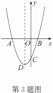 3. (2024·达州)如图,抛物线$y = ax^{2}+bx - 3与x轴交于点A(-3,0)和点B(1,0)$,与$y轴交于点C$,点$D$是抛物线的顶点。