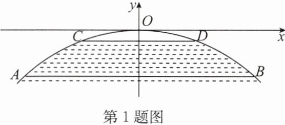 1. 如图,一座抛物线形的拱桥在正常水位时,水面AB宽为20米,拱桥的最高点O到水面AB的距离为4米.如果此时水位上升3米就达到警戒水位CD,那么水面CD宽为 (