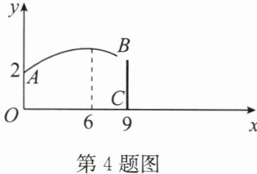 4. (2024·宁津期末)如图,排球运动员站在点O处练习发球,将球从O点正上方2m的A处发出,把球看成点,其运行的高度y(m)与运行的水平距离x(m)满足关系式$y = a(x - k)^{2}+h$.已知球与O点的水平距离为6m时,达到最高2.6m,球网BC与O点的水平距离为9m,高度为2.43m,球场的边界距O点的水平距离为18m,则下列判断正确的是 (