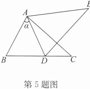 5. (2024·雨花台区模拟)如图,将 $\triangle ABC$ 绕点 $A$ 逆时针旋转到 $\triangle ADE$,旋转角为 $\alpha(0^{\circ} < \alpha < 180^{\circ})$,点 $B$ 的对应点 $D$ 恰好落在 $BC$ 边上,若 $DE\perp AC,\angle CAD = 24^{\circ}$,则旋转角 $\alpha$ 的度数为 (