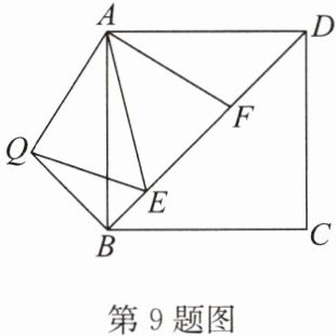 9. 如图,在正方形 $ABCD$ 中,$E,F$ 是对角线 $BD$ 上的两点,且 $\angle EAF = 45^{\circ}$,将 $\triangle ADF$ 绕点 $A$ 顺时针旋转 $90^{\circ}$ 后得到 $\triangle ABQ$,连接 $EQ$.