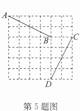 5. (2024·德城区期末)如图,在正方形网格中,线段$AB绕点O旋转一定的角度后与线段CD$重合($C,D$均为格点,点$A的对应点是点C$),若点$A的坐标为(-1,5)$,点$B的坐标为(3,3)$,则旋转中心点$O$的坐标为 (