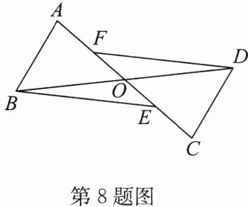8. 如图,$△ABO与△CDO$关于点O成中心对称,点E,F在线段AC上,且$AF= CE$.
