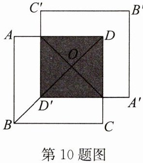 10. 如图,正方形ABCD与正方形$A'B'C'D'$关于点O成中心对称,若正方形ABCD的边长为1,设图形重合部分(阴影)的面积为y,线段OB的长为x,求y与x之间的函数关系式.