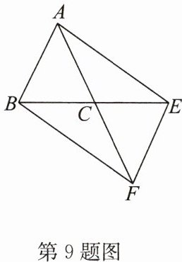9. 如图,在$△ABC$中,$AB= AC$,若将$△ABC$绕点C顺时针旋转$180^{\circ }得到△FEC$,连接AE,BF.