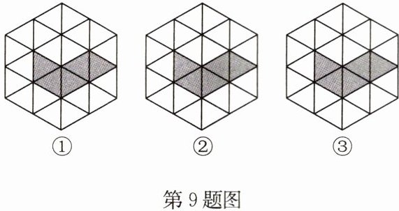 9.图①,图②,图③均是由边长为1的正三角形构成的网格,每个网格图中有5个正三角形已涂上阴影.请在余下空白正三角形中,按下列要求涂上阴影: