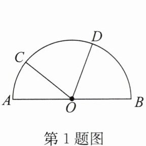 1. (2024·苏州期末)如图,AB为半圆O的直径,C为半圆O上一点,D为$\overset{\frown}{BC}$的中点.若$\overset{\frown}{AC}的度数为40^{\circ}$,则$\angle BOD$的度数为 (