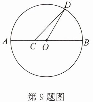9. (2023·贵池区二模)如图,C是直径AB的三等分点($AC < CB$),D是$\overset{\frown}{ADB}$的三等分点($\overset{\frown}{BD}<\overset{\frown}{AD}$).若直径$AB = 12$,则CD的长为______