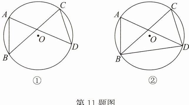 11. (2024·硚口区期末)如图①,AD,BC是$\odot O$的弦,且$AD = BC$,连接AB,CD.