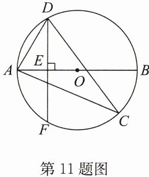11. 如图,AB 是⊙O 的直径,∠ACD 是$\overset{\frown}{AD}$所对的圆周角,∠ACD = 30°.