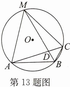 13. 如图,在⊙O 中,A,B,C 是⊙O 上的点,∠ABC = 120°,弦 BM 平分∠ABC 交 AC 于点 D,连接 MA,MC. 求证:AB + BC = BM.