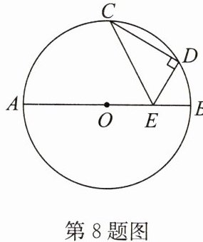 8. (2024·乐陵期末)如图,AB 是⊙O 的直径,C 为$\overset{\frown}{AB}$的中点,D 为$\overset{\frown}{AB}$上的一个动点,连接 CD,作 DE⊥CD 交 AB 于点 E,连接 CE. 若⊙O 的半径为 5,且$\frac{DE}{CD}= \frac{3}{4}$,则△CDE 的面积为 (