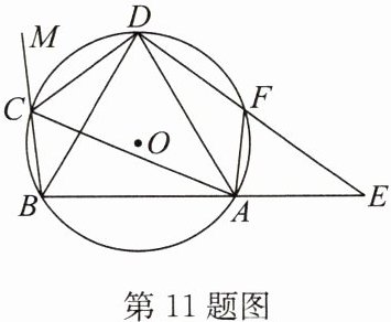 11.如图,$△ABC是\odot O$的内接三角形,$△ABC$的外角平分线CD交$\odot O$于点D,F为$\widehat {AD}$上一点,且$\widehat {AF}= \widehat {BC}$,连接DF,并延长DF交BA的延长线于点E,连接AF,BD,AD.