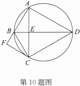 10.(2023·北京)如图,圆内接四边形ABCD的对角线AC,BD交于点E,BD平分$∠ABC,∠BAC= ∠ADB$.
