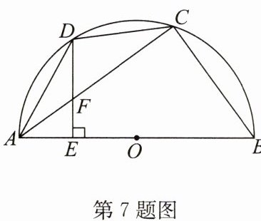 7.如图,四边形ABCD内接于半圆O,AB为直径,$AD= CD$.过点D作$DE⊥AB$于点E,连接AC交DE于点F.若$AE= 4,BE= 16$,则DF的长为 (