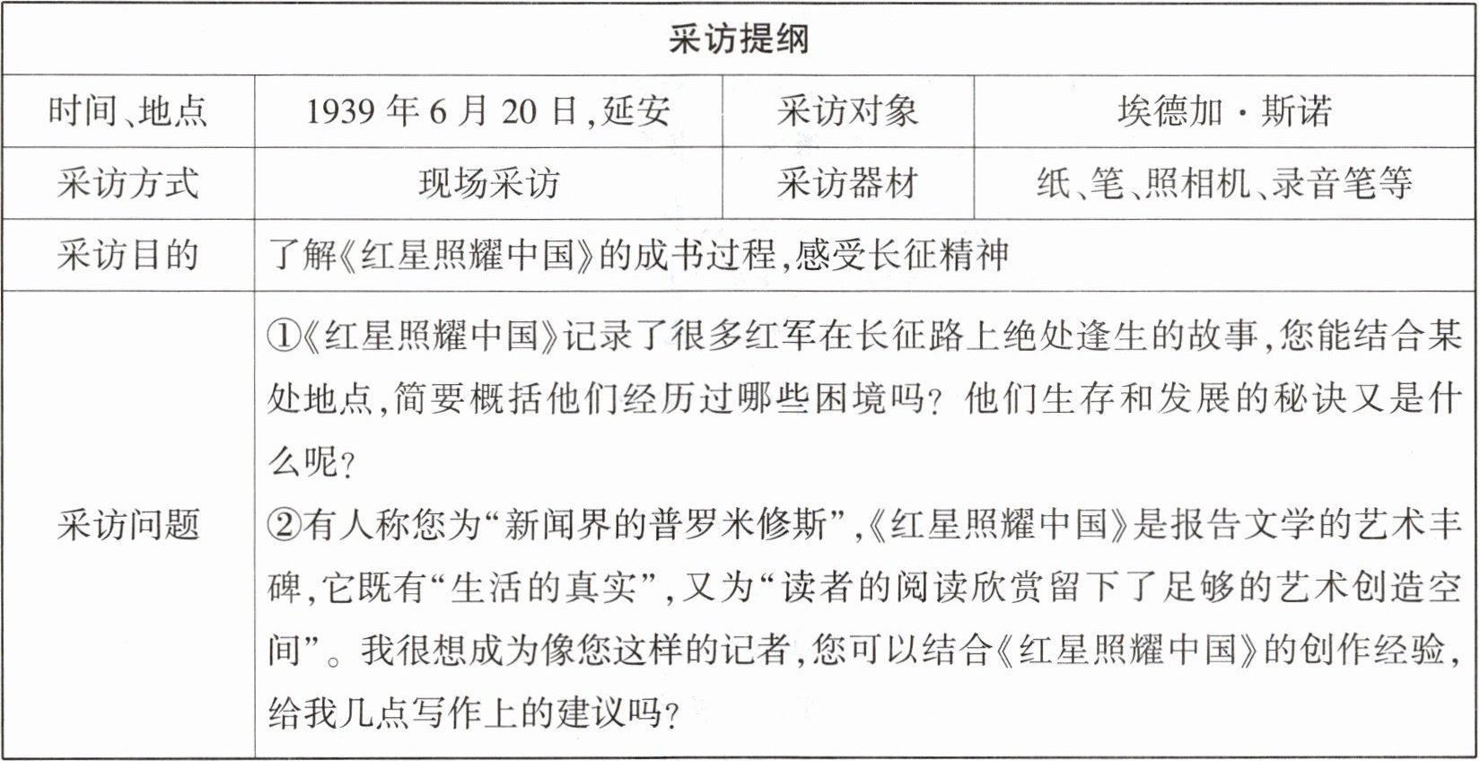 |采访目的|了解《红星照耀中国》的成书过程,感受长征精神| | |