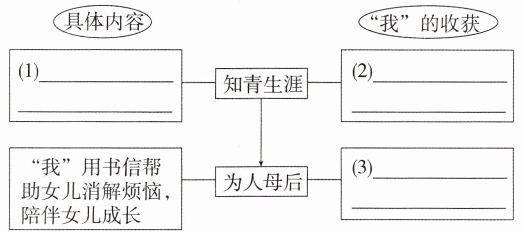 (1)母亲用亲笔信抚慰上山下乡时年少困顿的"我"