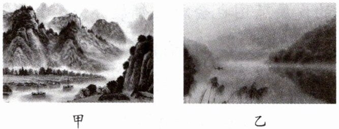 (1)乙。“江流天地外,山色有无中”,以山光水色作为画幅的远景。汉江滔滔远去好像一直涌流到天地之外去了,两岸重重青山,迷迷蒙蒙,时隐时现,若有若无,好一幅壮阔飞动、奔放雄伟的水墨山水图。诗人着墨极淡,却给人以伟丽新奇之感,其效果远胜于重彩浓抹的油画和色调浓丽的水彩。