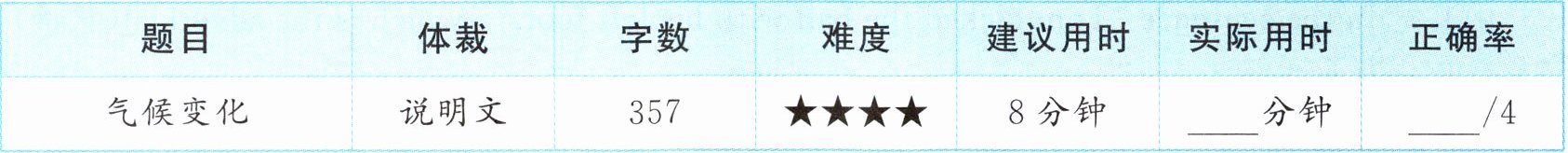 | 气候变化 | 说明文 | 357 | ★★★★ | 8分钟 | ____分钟 | ____/4 |
