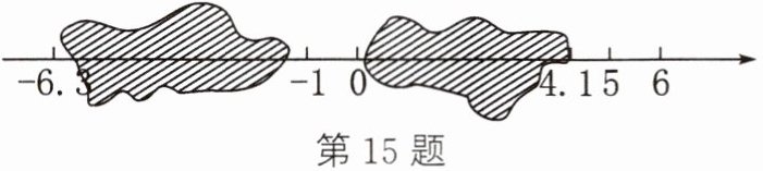 15. 小明在写作业时不慎将两滴墨水滴在数轴上,根据图中数值,你能确定墨迹盖住的整数是哪几个吗?