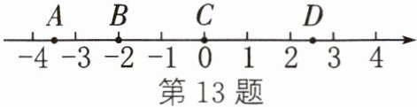 13. 如图,分别写出数轴上点A、B、C、D所表示的数: