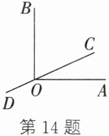 14. 如图,∠AOB= 90°,直线 CD 经过点 O,∠BOD= 110°.