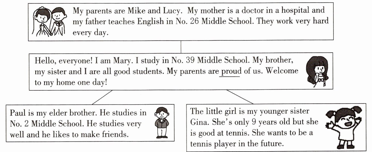 )3. From the passage, we can find that ______.A. Gina has a sister and a brother B. Mary is 9 years old