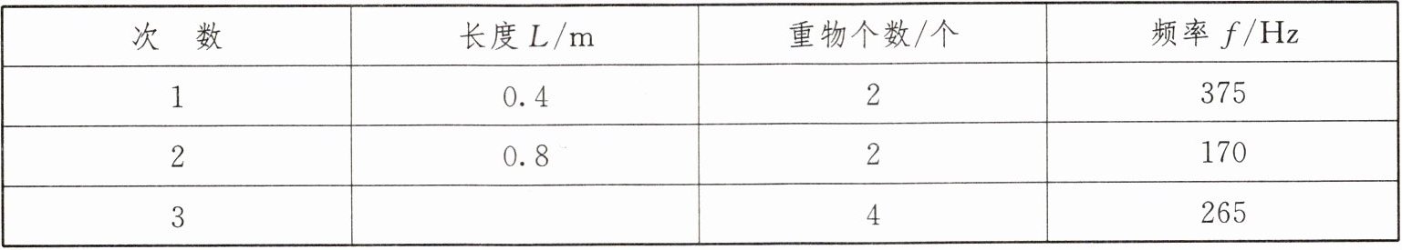 |次数|长度L/m|重物个数/个|频率f/Hz|