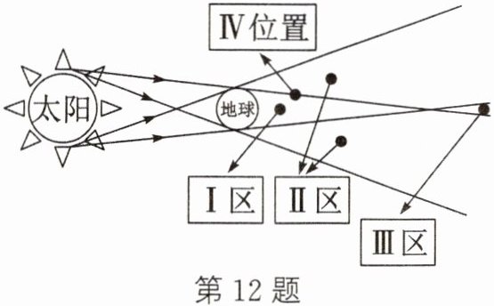 12. 我们常能观测到奇妙的天文现象,对月球处于下列不同位置时说法正确的是( )