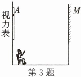 3. 为了在较小的空间内检查视力,可以让被测者背对视力表观察平面镜M中视力表所成的像,请在图中作出被测者通过平面镜M看到视力表上A点的光路图。